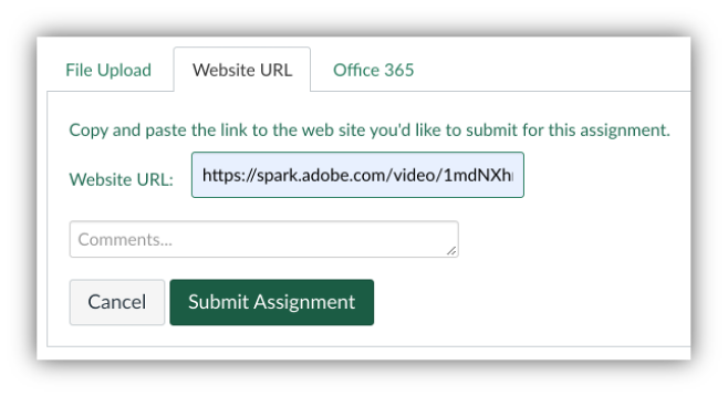 Instructors can create an online Canvas assignment opens a new website and enable URL as a submission option.