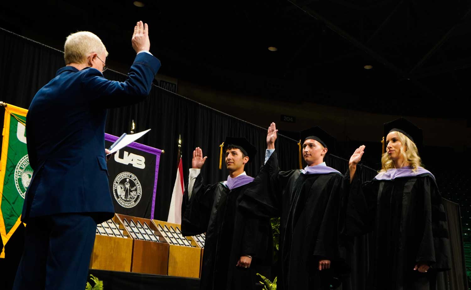 Dean Taichman presided over the event, which included messages from school leaders, alumni, and state dental leadership. Among them were remarks from R. Parrish King, D.M.D., who serves as president-elect of the dental alumni association, and Adolphus M. Jackson, D.M.D., who serves as president of the Alabama Dental Association (ALDA). Scott Harris, M.D., M.P.H., State Health Officer for the Alabama Department of Public Health delivered the traditional Lister Hill Lecture to the graduates.